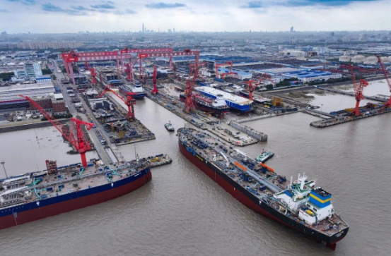 12月,中国船舶集团旗下外高桥造船的码头船坞依旧是热火朝天的繁忙景象。上周,外高桥造船相继完成新船命名、出坞、入坞和试航等八个生产大节点,向着全面超额完成年度生产目标发起“总攻”。