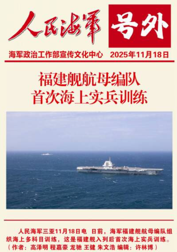 日前,海军福建舰航母编队组织海上多科目训练,这是福建舰入列后首次海上实兵训练。