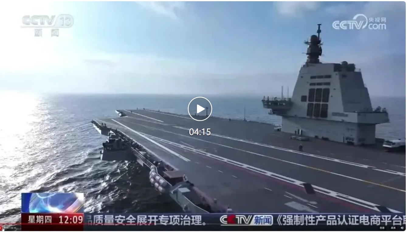 12月25日,中央电视台《新闻30分》栏目报道福建舰入列后首次海上实兵训练任务情况。
