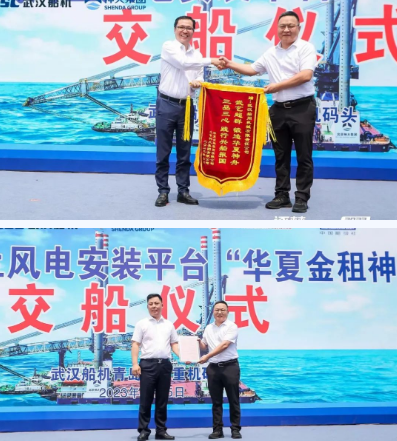 7月25日,中国船舶武汉船机总包建造的华夏金租神大01号1200吨自升式风电安装平台在青岛举行交船仪式,正式交付业主华夏金融租赁有限公司。华夏金融租赁有限公司、北京神大集团有限公司、飞励特船舶管理有限公司、天海防务集团、711 研究所、中国船级社等多个单位参加了交船仪式,共同见证了该重大时刻。