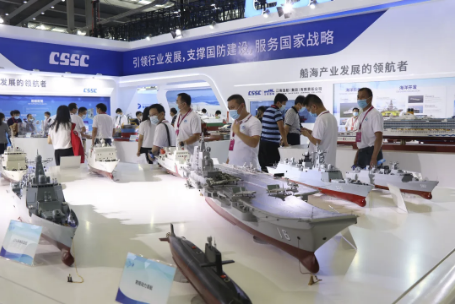 防务产业专区展示了中国船舶集团的海军装备建设实力,此次共展出了多型舰艇,包含航空母舰、驱逐舰、护卫舰、潜艇等。