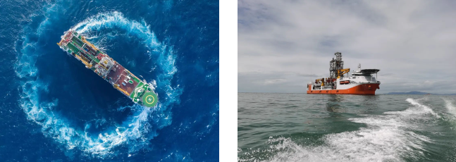#  通过配置最先进的DP-3级动力定位系统,自动调整船舶底部7台推进器的转向和推力大小,来抵抗海上风、浪、流作用在船上的载荷,使船舶在海上保持一定的水平位置;