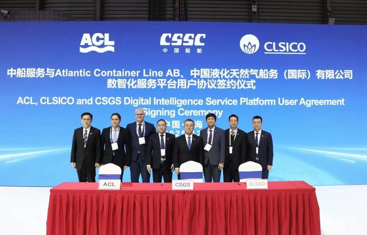 中国液化天然气船务(国际)有限公司(CLSICO)与意大利Grimaldi集团旗下Atlantic Container Line(ACL)作为中船服务的长协服务签约客户,与中船服务正式签订数智化服务平台用户协议,标志着CSGS品牌首批标杆客户成功落地。这一合作不仅体现了客户对中船集团整船服务能力的信任,也为CSGS全球服务品牌的推广树立了典范。