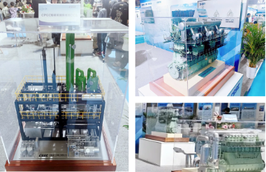 中国船舶集团旗下中国动力子公司中船动力(集团)有限公司携多款产品精彩亮相。中船动力集中展出了10X92DF-M甲醇双燃料发动机、智能控制废气再循环系统(iCER)以及船载碳捕集系统(CCS)等绿色低碳环保产品,展示了中船动力在海洋装备领域的创新成果。其中,10X92DF-M是最新型大功率甲醇双燃料发动机,可采用甲醇和常规柴油作为燃料。在使用绿色甲醇时,可实现零碳排放;与常规燃料发动机相比,甲醇燃料发动机还能有效降低硫氧化物排放90%以上。iCER 和 CCS 系统作为船舶发动机排放后处理装置,能够切实有效地改善发动机污染物与温室气体的排放水平,是中船动力为绿色低碳船舶动力提供的新技术新方案。
