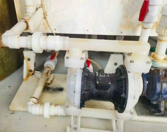 此前,分公司稀硫酸配制工艺过程中使用美国进口气动隔膜泵,但膜片和铝碗在长期运行中频繁出现贴合部位松动漏酸问题, 2023年因漏酸问题更换了6台进口泵,维修费用高达8.1万元,不仅增加了生产成本,还影响生产的连续性。