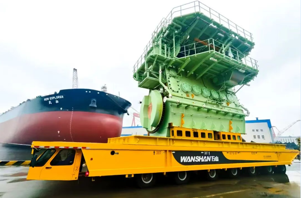 10月11日,搭载6G60MEC #56 主机的600吨平板车缓缓驶出中船集团旗下中国动力子公司中船发动机大柴公司总装制造部大门,标志着大柴公司首次实现该型主机的整机发运,实现了公司在大型主机产品发运能力上的新突破。